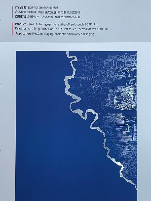 | 관련 제품 | Bopp 열 라미네이션 필름 (matt/gloss), BET 열 라미네이션 필름 (gloss/matt), 초연속 디지털 라미네이션 필름, 금속화 라미네이션 필름, 벨벳/소프트 터치 매트 필름, 안티 스커프 매트 필름,지문 저항 매트 필름, 촉각 엠브로싱 라미네이션 필름, 매트 라크, 부드러운 터치 라크, 물 기반 폴리우레탄 |